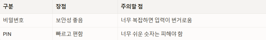 비밀번호만 쓰는 것보다 PIN 같이 써두는 사람도 많음.