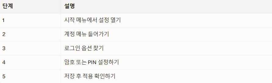 계정 메뉴 안에서 로그인 옵션 항목을 찾으면 됨.